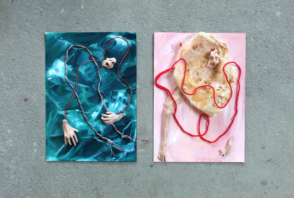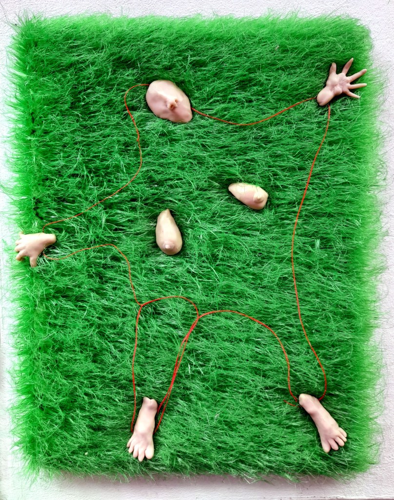 Metamorphoses (series) Corpse pose 30×40 polymer clay, red thread, grass 2023 Share this: Click to share on X (Opens in new window) X Click to share on Facebook (Opens in new window) Facebook Like Loading...